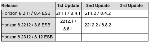 Horizon 8 ESBs typically receive at least three planned periodic maintenance updates.